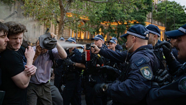Sydney'deki protestoda polis, namaz kılan Müslümanlara sert müdahalede bulundu. Yeşiller Partisi, bu hareketi barışçıl bir topluluğa yönelik bir ceza olarak eleştirdi.